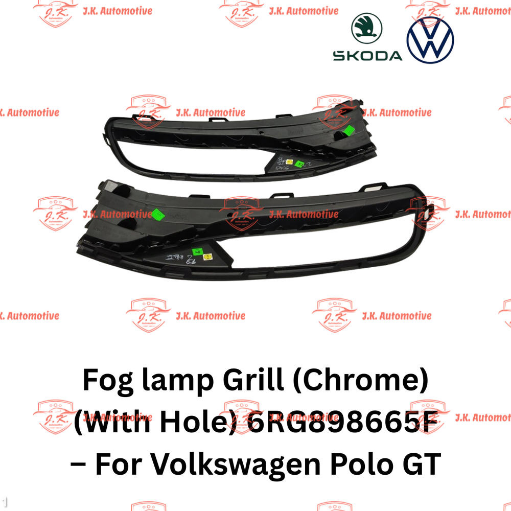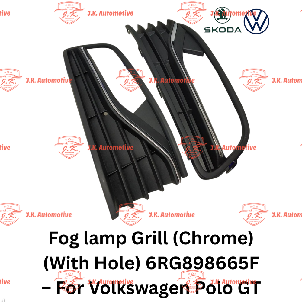 Buy OEM Fog Lamp Grill Chrome With Hole Left And Right Side 6RG898665F For Volkswagen Polo GT 2010 To 2022 From J.K Automotive India A Premium Exterior Styling Component Designed To Enhance The Front Appearance While Allowing Proper Air Flow To Fog Lamp Area And Protecting Internal Components Crafted With High Quality Chrome Finish This Grill Provides Excellent Durability Resistance To Wear And Tear And A Stylish OEM Look Perfect For Maintaining Vehicle Aesthetics And Performance