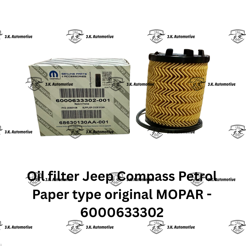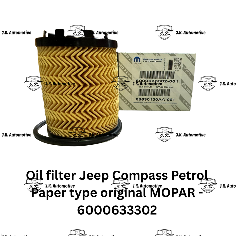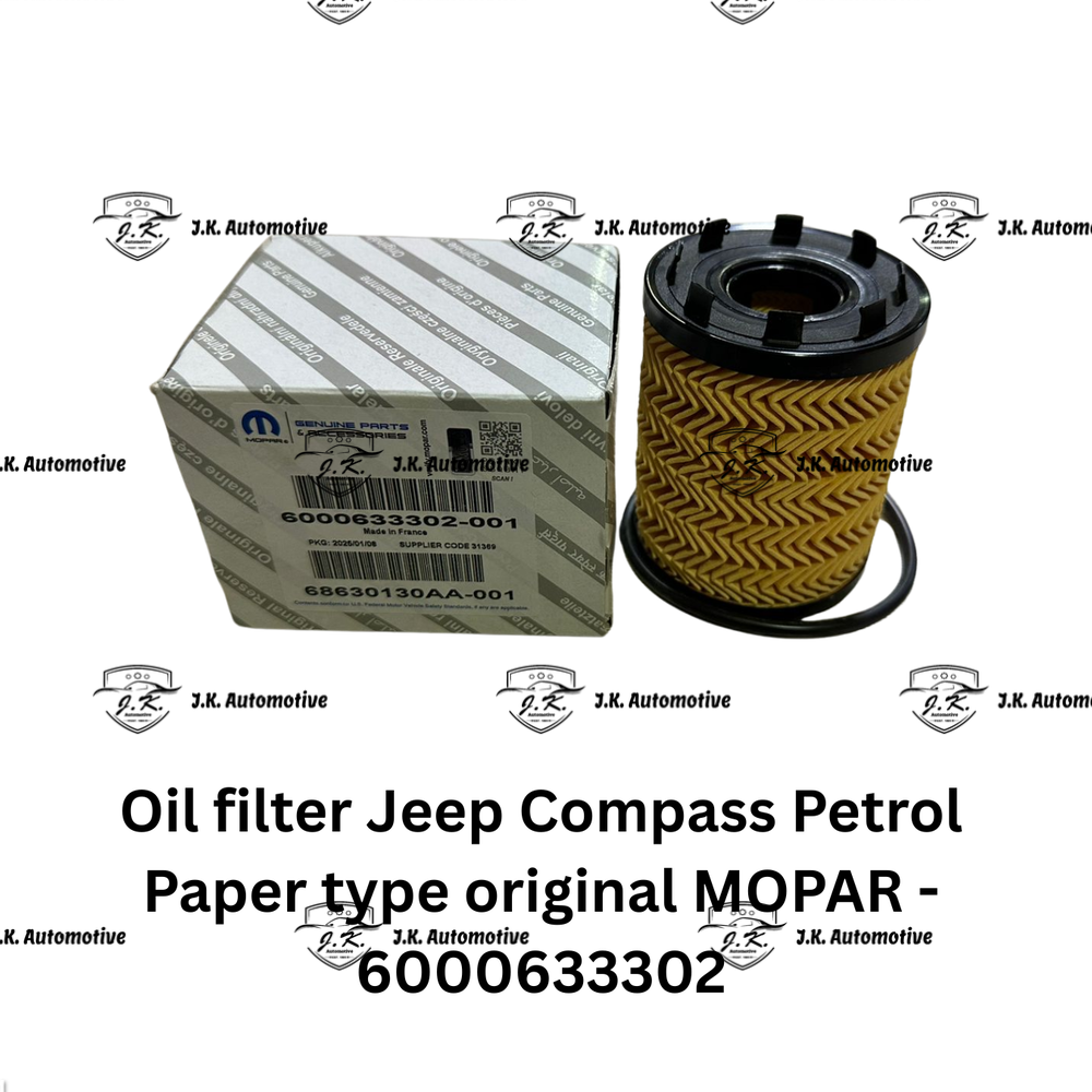Get The Best Prices and High End OEM Quality For Oil filter Jeep Compass Petrol Paper Type Original MOPAR – 6000633302 (2017 – 2026) At J.K. Automotive India – Your One Stop Solution For All Premium Car Parts.