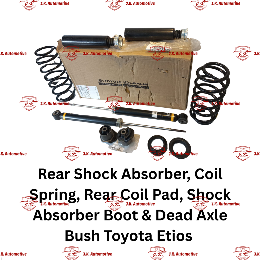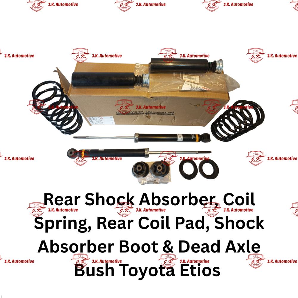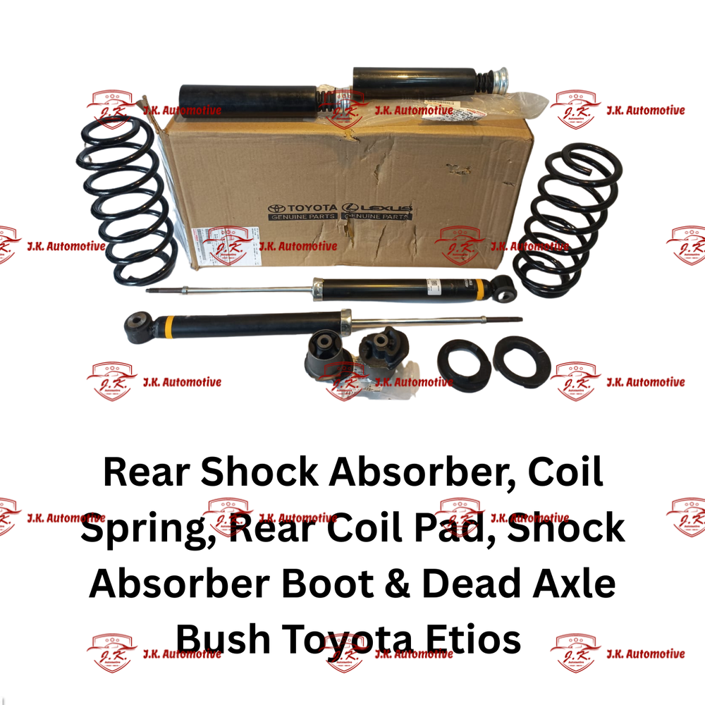 HomeShopSteering And SuspensionSuspension Combo KitsRear Shock Absorber, Rear Shock Absorber Kits, Rear Coil Springs, Rear Coil Pads And Rear Dead Axle Bush For Toyota Etios Original Toyota – T0480W1304, 487500D110, 4872552100, 482570D050
